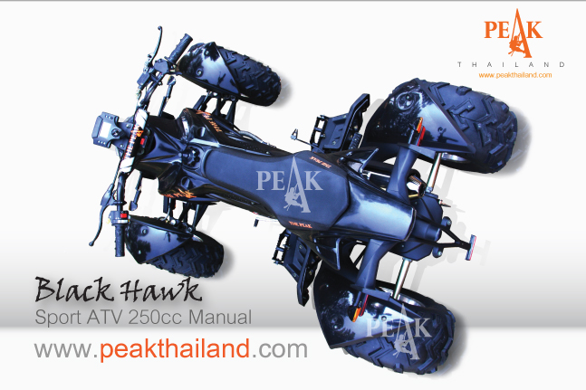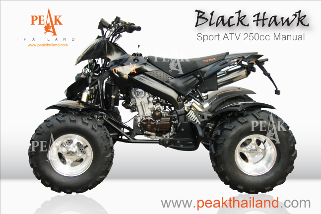 SPORT ATV ขนาด 250 CC. รุ่นใหม่ล่าสุดนี้ได้รับการพัฒนาทางด้านวิศวกรรม ถึงขีดสุดความสามารถ และเสริมสมรรถนะ ให้รถมีความแข็งแรงทนทาน การทรงตัวเข้าโค้งเข้าเส้นทางขรุขระได้อย่างดี อีกทั้งเมื่อเปรียบเทียบทางด้านสมรรถนะกับราคาแล้ว ท่านจะพบได้กับ BLACK HAWK เป็นรถรุ่นที่ดีที่สุดในประเทศไทย มี 4 สี ให้เลือก สีขาว สีดำ, ส้ม และสีแดง